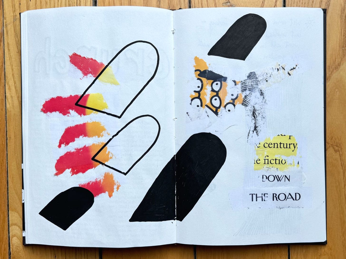 Hello friends! Here’s another selection of recent pages from my hardbound world of paper and pencils and pens and paints and torn magazines gummed up with glue sticks. Some day, maybe I’ll write about how I’ve been keeping some form of sketchbook like this for the past 35 years and what that means and how it’s a kind externalized analog intelligence practice that keeps me grounded as the world spins out... or not. For now, enjoy…